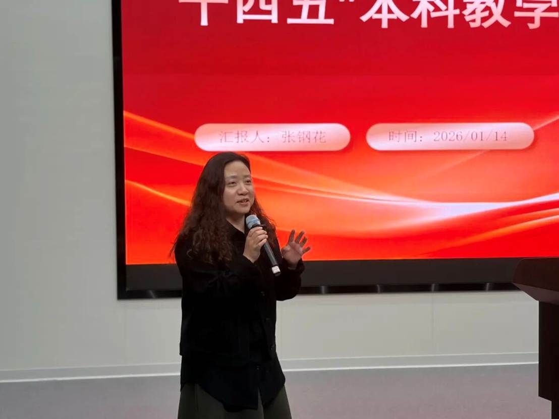 副院长张钢花围绕 本科教学质量提升,回顾了“十四五”期间取得的标志性成果,并提出了“十五五”期间深化教学创新、强化师资队伍建设,优化实践育人体系,推动信息技术与教育教学深度融合,全面提升创新性、应用型、复合型新闻传播人才培养质量等核心任务。